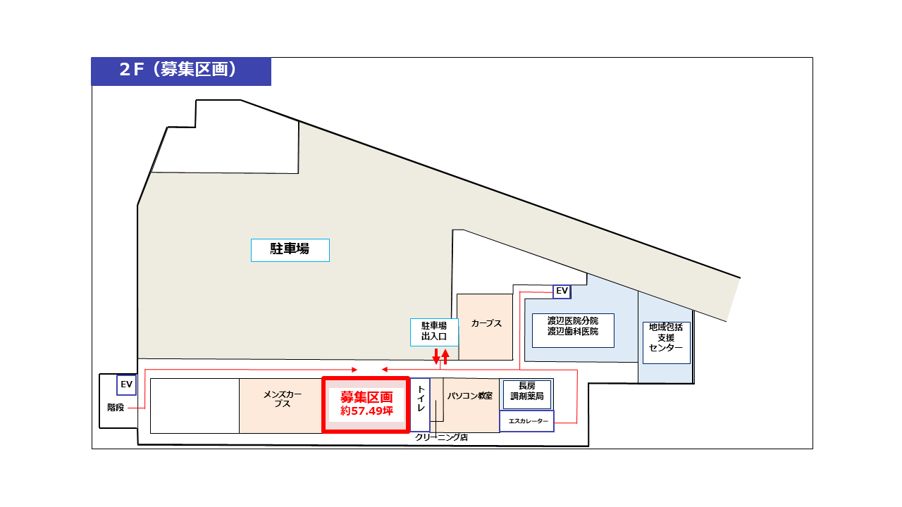 本物件は「ワンストップ型」の複合商業施設、コピオ長房店の2Fに位置し、駐車場は194台収容可能。