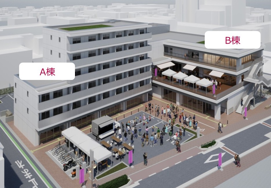 みなてらす河原町は新築複合施設であり、周辺住民が利用できるスぺ-スを設け、町内イベントも多く行われています。A棟2~6階は賃貸住宅となり、隣接するB棟にはスーパーマーケットや在宅クリニックを併設予定です。