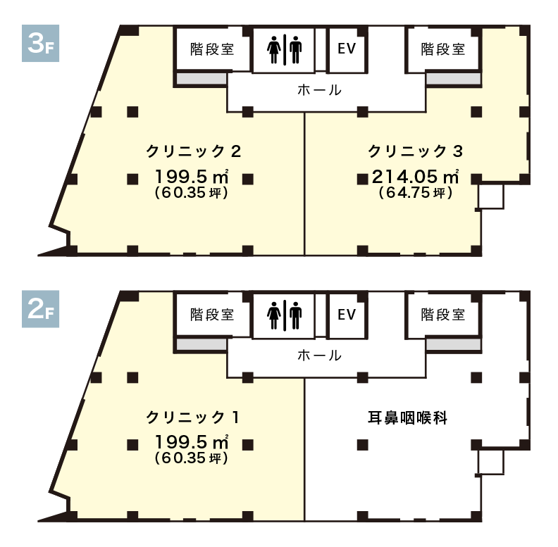 区画1(2階):199.50㎡、区画2(3階):199.5㎡ |